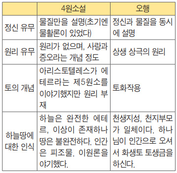 -서양 4원소설과 동양 오행의 비교