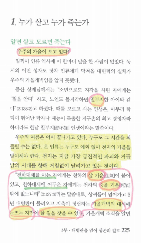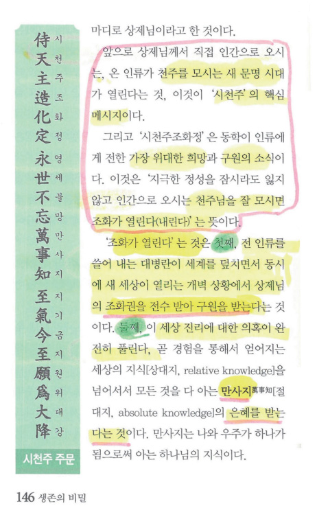 의통을 전수받아 태을주 읽는 것, 여기에 대병란을 극복하고 후천 새 인간으로 거듭나는 비밀이 있다.