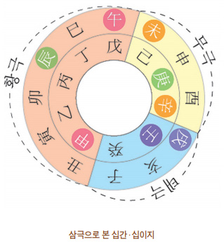 지난 호에서 우주의 변화는 삼극三極으로 분류할 수 있다고 하였습니다. 황극皇極의 분열작용과 무극無極의 중재 및 전환작용, 태극太極의 통일작용이 그것입니다. 십간을 삼극으로 분류하면 갑甲·을乙·병丙·정丁·무戊는 황극, 기己·경庚·신辛은 무극, 임壬·계癸는 태극에 배속할 수 있습니다. 그리고 십이지에서 축丑·인寅·묘卯·진辰·사巳·오午는 황극, 미未·신申·유酉는 무극, 술戌·해亥·자子는 태극에 배속할 수 있습니다.