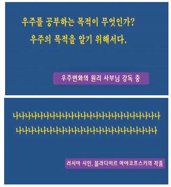 결국 우주의 목적은 너 때문이야, 너를 위해서야. 나를 위해서, 널 위해서 우주가 수만 년 전부터 이런 준비를 해왔는데, 거기에 응답하겠냐? 응답하라! 이 얘기죠. 여러분, 우주관은 그렇게 인간론적으로, 철학적으로, 내가 결단을 내리게 하는 이야기로 끄집어내줘야 지식이 아니라 깨침이 될 수 있다고 저는 생각합니다. 우리가 운전을 어떻게 하냐, 방향을 어떻게 트느냐에 따라 그 사람한테 들어가냐, 흘러가고 마느냐, 그게 나뉩니다.