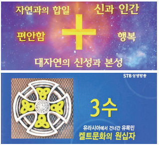 행복, 평안함, 자연과의 합일, 신과 인간, 대자연의 신성·본성, 이것이 원십자로 상징된다. 그리스 항해사들이 생명처럼 여긴 것이 네 개의 주요 방위이다. 유라시아에서 건너간 유목민 켈트문화의 원십자에는 정동서남북에 3수로 얽혀져 있다. 중앙에 원십자가 또 있다. 원십자의 중앙은 본체, 하나님의 마음을 상징한다. -러시아 환단고기 북콘서트, 종도사님 도훈