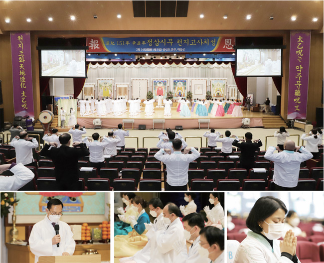 지난 2월 14일(음력 1월 3일), 증산도 교육문화회관 태을궁에서는 정삼치성正三致誠(정삼 도정시무 천지고사치성)이 봉행되었다. 이날 올려진 천지고사치성은 신축辛丑년 도정 시무를 천지에 고하며 큰 기운을 내려 받고, 올해 도정에 본격적으로 돌입하는 대치성이다.