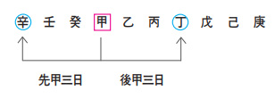 보시다시피 ‘선경삼일’은 ‘丁‧戊‧己’이고 ‘후경삼일’은 ‘辛‧壬‧癸’입니다.