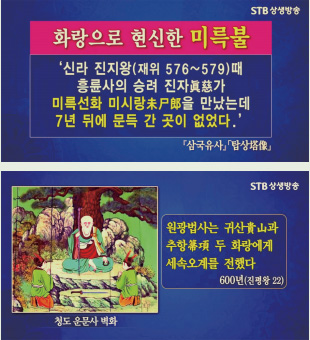 또한 신라 불교는 단순히 석가불을 중심으로 한 불교가 아닙니다. 신라의 유명한 화랑문화를 보면 화랑은 각자가 ‘미륵불의 화신’이라고 생각하여 미륵의 심법으로 미륵의 이상 낙원을 건설하는 주인공이었습니다. 그래서 아도화상이 세운 신라 최초의 절 흥륜사에는 미륵부처님을 모셨습니다. 이는 『삼국유사』 「제 3권 미륵선화 미시랑 진자사」와 「탑상」에서 전하고 있습니다. 경주 흥륜사 승려 진자가 기도한 대상은 미륵부처님입니다. 신라 천 년 불교문화의 근본을 세우고, 삼국을 통일하는 역사의 추동력은 바로 화랑과 더불어 ‘미래에 이 세계를 근본적으로 혁신하고 개벽을 하는 도솔천 천주님 미륵불이 이 땅에 오신다, 미륵불이 이 땅에 오신다’는 믿음에서 왔다고 할 수 있습니다.