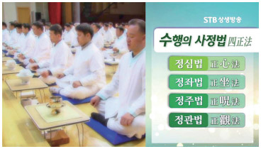 그리고 수행의 사정법四正法이 있습니다. 종도사님께서 정리해 주신 사정법 중 정심법正心法은 수행을 하려면 마음을 바르게 해야 된다는 것입니다. 항상 참회를 하면서 마음을 바르게 해야 합니다. 그리고 정좌正坐法, 자세를 바르게 하고 정주正呪法, 주문을 바르게 읽어야 합니다. 음을 잘 맞추고 소리도 분명하고 또박또박하게 읽는 것이 중요합니다. 정관법正觀法은 무엇이 보여도 마음을 뺏기지 말아야 한다는 겁니다. 이 네 가지가 바로 수행을 이루는, 공부를 성공적으로 이루는 사정법입니다.