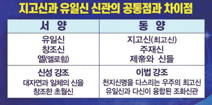 동양과 서양은 신神에 대한 인식이 전혀 다르다. 그 근본 이유는 동서 문화가 싹트고 뿌리 내린 삶의 환경이 다르기 때문이다. 서양에서는 하늘땅을 빚어내고 인간을 창조한 창조자 유일신으로 신을 인식한 반면, 동양에서는 자연 질서[理]를 다스리시는 통치자(상제上帝)로 신을 인식해 왔다. 천지간에 가득 차 있는 수많은 인격신은 한 분 삼신상제님 아래 서로 평등한 관계에 있다. 단순히 한 분의 하나님이 자연과 인간을 창조하고 다스린다는 유일신관이나, 만물은 신이고 그 신들을 함께 섬긴다는 다신론은 모두 신도의 단면만을 본 것이다. 증산 상제님이 가르쳐 주신 신관의 총결론은 일원적一元的 다신관多神觀이다.