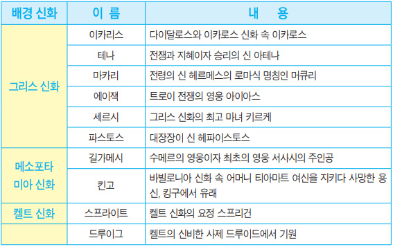 이터널스는 그리스 신화, 켈트 신화, 메소포타미아 신화(바빌론-수메르-아카드-아시리아 신화가 모두 이에 속함)라는 세 개의 신화를 섞어 만들어졌다는 의미다. 영화에서 길가메시와 테나는 영혼의 동반자처럼 친한 관계인데 신화를 살펴보면 모두 수메르에 뿌리를 두고 있다. 수메르인들이 세운 우루크Uruk는 길가메시의 고향이었고, 여신 인안나가 수호신으로 모셔진 도시국가였다. 테나의 원형인 아테나 여신은 수메르의 인안나에 기원을 두고 있다고 하며 인안나 여신은 후에 수메르가 바빌론에 정복되면서 이슈타르 여신과 동일시되게 된다.