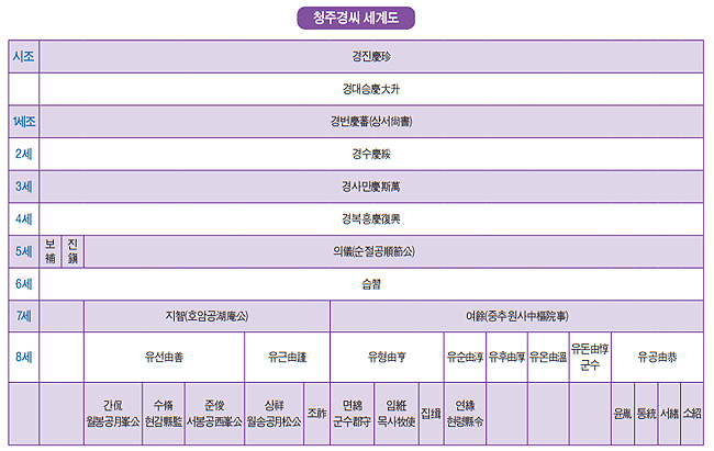 나무는 뿌리가 있어 가지와 잎이 무성하듯이 사람도 뿌리가 있어 오늘날의 후손들이 존재하는 것이다. 선조들의 보록譜錄에는 역사의 소용돌이 속에서 인고의 아픔을 견뎌 내며 끈질기게 혈맥을 이어 온 조상들의 발자취가 고스란히 담기게 된다. 이번 호에는 희성임에도 불구하고 역사에 큰 족적을 남긴 청주 경씨들의 족적을 살펴보자.