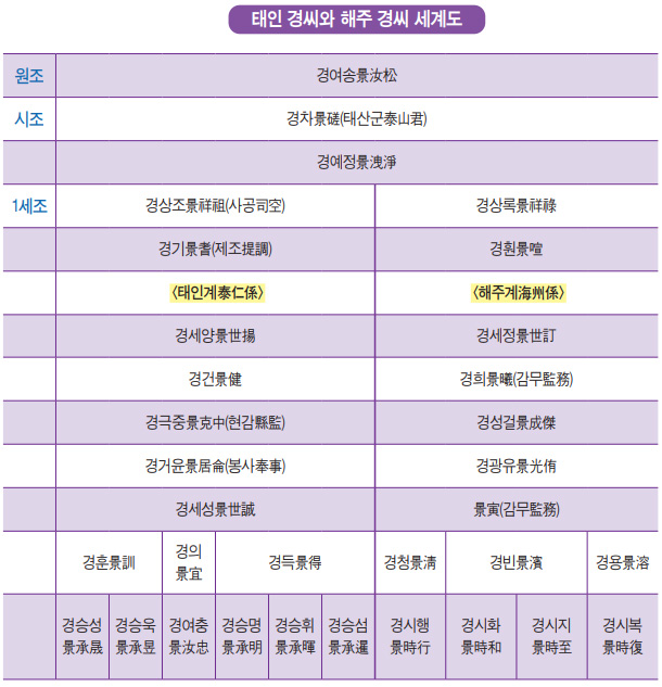태인 경씨 주요 인물