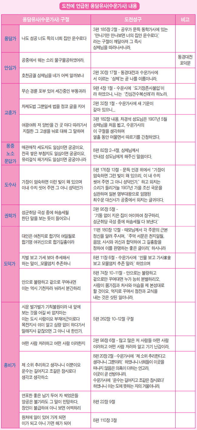 또한 이 책은 번역한 책이다. 비록 한글이지만, 100여 년 전에 사용한 우리의 어휘가 이렇게 달랐을까 싶기도 하고, 중간중간의 한문에 대한 기본적 지식도 있어야 하기에 번역이 필요했다. 하지만 역자의 생각도 많이 들어가 있고 현재 우리가 쓰는 언어의 결과물로 비교적 최선의 구성을 이룬 책이 바로 도올의 『용담유사』라고 할 수 있다. 그래서 이를 참고하시되, 최수운 대신사가 상제님을 뵙고 받아 내린 시천주주를 수련하면서 이 책을 읽는다면 본래의 뜻에 좀 더 가깝게 다가갈 수 있을 것이라 생각한다. 그렇게 되면 수운의 『용담유사』는 도올의 『용담유사』가 아니라, 이를 읽고 수도하는 이들의 『용담유사』가 될 수 있을 것이다.