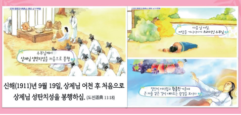 이렇게 성모님께서 태몽을 꾸시고 드디어 1880년 음력 3월 26일에 인류의 어머니 태모님이 탄강하시게 됩니다.