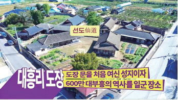 그런데 태모 고 수부님께서 성수 6세 때 부친상을 당하십니다. 옛날에는 가부장 제도라 아버지가 집의 중심이었기에, 아버지가 돌아가시면 가업이 급격히 기웁니다. 이에 성모님께서는 태모님과 함께 외외가인 송씨의 승문僧門에 귀의하여 수행을 하십니다. 그리고 태모님 성수 9세 때는 동학을 하는 이모부 차치구車致九가 사는 대흥리의 집으로 이사를 가십니다. 태모님과 성모님 두 분이서 참 많은 고생길이셨겠죠. 여기서 수부님도 시천주주 수련을 하십니다. 동학 주문이 시천주侍天主 주문이잖아요. 시천주侍天主 주문은 상제님을 모시는 주문인데, 태모님께서는 이때는 모르셨을지라도 이미 상제님을 모실 준비를 하고 계셨던 것이죠.