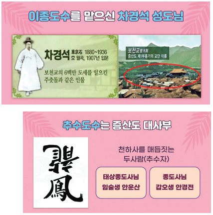 그래서 이번 시간에는 세 가지의 핵심 주제로, 첫 번째 수부首婦의 의미, 두 번째 종통宗統의 뿌리 수부님, 세 번째 수부님의 생애에 대해 살펴보고, 마무리 결론을 짓는 것으로 전개해 볼까 합니다.