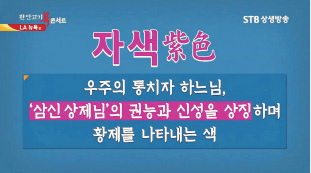 색채 미학에서 자색은 하느님색이다. 자색은 우주의 통치자 하느님, 삼신상제님의 권능과 신성을 상징하며 황제를 나타내는 색이다. - 환단고기 북콘서트 미국 편