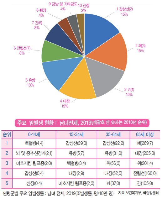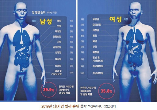 2019년 암癌 등록 통계 발표 남성은 폐암, 여성은 유방암이 1위