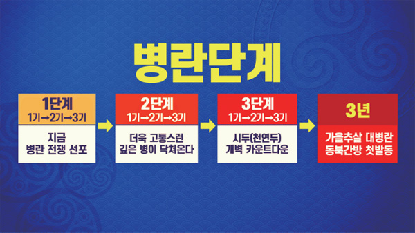 역사에는 반드시 정의가 살아 있어서 원과 한이 크게 정리되는 계기가 있습니다. 그게 바로 지금 시간대에 닥치는 병란 개벽입니다. 원과 한이라는 것은 여름에서 가을로 바뀔 때, 가을의 숙살肅殺 기운이 터질 때 대병란을 일으킵니다. 이것은 그 누구도 멈출 수 없는 것입니다.