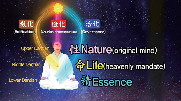 그다음에 여기 가슴에 있는 것을 중단, 명단命丹이라 합니다. 우리의 수명, 목숨, 생명 섭리와 연관되고 자연을 진정으로 감성적으로 느끼는 것도 이 명단과 관련이 있습니다. 상단과 하단의 빛의 통로 공부를 융합하면, 최종적으로 명단에서 공부의 열매를 크게 맺습니다. 그리하여 무병장수할 뿐 아니라 인생에 대한 진정한 기쁨의 정서를 채울 수가 있는 것입니다.