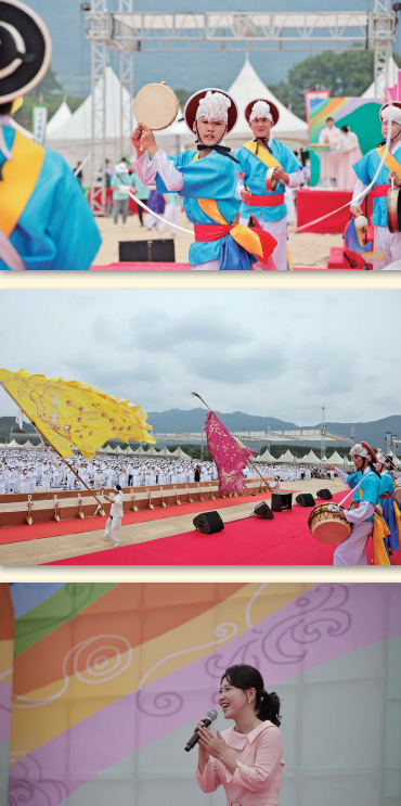 상생월드센터 착공 대천제를 축하하며 ‘인류 최초의 경전, 천부경’ 노래 공연이 시작되었다. 예악문화팀 권유미 님은 천부경 노랫소리가 너울너울하도록 불러 보겠다며 숫자 3은 완성의 숫자로 이 자리에 함께한 모든 분들이 열매 맺기를 기원한다고 했다.