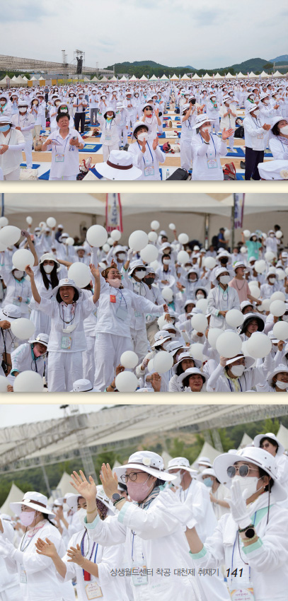 향후 신령한 천지 기운과 공력이 모아지고 견실한 공정이 힘을 더하여 장차 상생월드센터가 완공된 후에는 열 배, 백 배의 역사 광복군들이 이 자리에 함께하여 세계일가의 대통일 문화를 이루는 동량으로 성장하기를 기원해 본다.