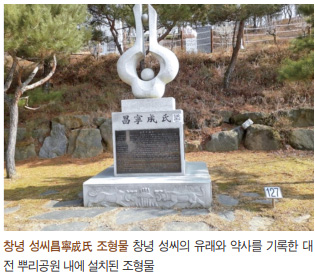 뿌리공원 조형물에 새겨진 창녕 성씨昌寧成氏의 유래