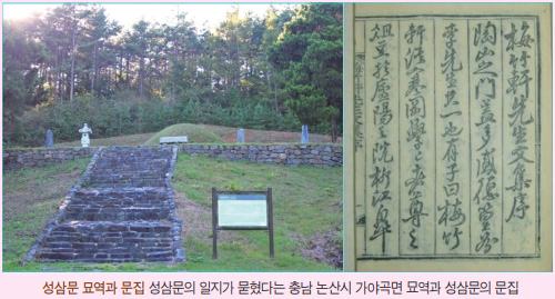 성삼문은 1456년(세조 1년) 단종 복위를 도모하다 탄로가 나자 유학자로서 신념과 절의를 위해 목숨까지 버렸던 사육신死六臣의 한사람이다. 정권의 변동기에 고고하게 절의에 충실했던 그는 창녕 성씨의 정신적 지주로 일컬어져 오고 있다.