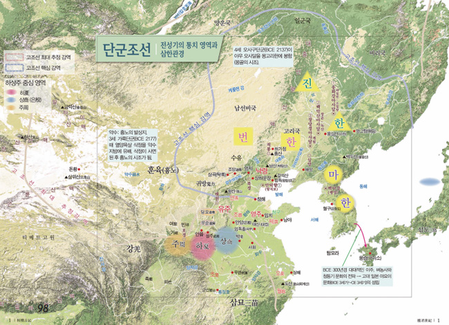 이들 역사책에 기록된 제후국만 해도 시라尸羅(길림), 고례高禮(고구려) 즉 고리국稾離國, 옥저, 부여, 예濊, 맥貊, 남국藍國(북경 부근), 숙신肅愼, 청구靑邱, 낙랑樂浪, 여黎, 임둔臨屯, 현도玄菟, 고죽孤竹, 영지令支, 수유須臾, 엄奄(산둥성 곡부), 서徐, 회淮, 추追, 양이良夷, 양주楊州, 유兪, 진번眞番, 졸본卒本, 비류沸流, 해두海頭, 개마蓋馬, 구다句茶, 송양松壤, 조나藻那, 주나朱那, 행인荇人 등으로 30개국이 넘는다.