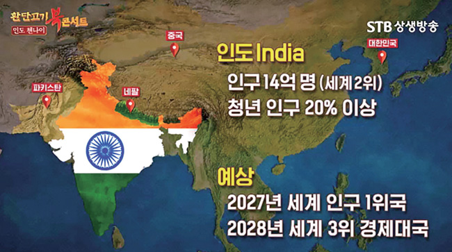 세계에서 일곱 번째로 넓은 땅을 가진 인도에는 14억 명이 살고 있으며, 청년 인구가 20%를 넘는 젊은 나라입니다. 인도인들은 굳건히 자기 정체성을 지키면서 힌두교, 이슬람교, 불교, 자이나교, 시크교 등 유수한 종교와 수행, 요가 등 숭고한 영성 문화로 지구촌 인류에게 큰 영감을 불어넣으며, 신을 찬양하고 참나(眞我)를 찾는 지혜를 전해 주고 있습니다.