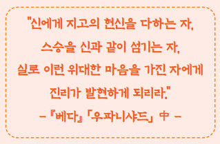 각양각색의 종족, 언어, 종교, 사상이 공존하며 한데 어울려 조화를 추구하는 신비한 ‘인도의 힘’은 어디에서 나오는 것일까요? 인도 국민의 80%가 신앙하는 종교이자 출생에서 죽음까지 그들의 삶 전체를 관통하는 생활 문화인 힌두교는 아리아인의 베다Veda와 드라비다인의 전통 영성 문화가 결합하면서 탄생했습니다. 베다 문화는 인도를 넘어 지구촌 인류에게 전해진 신성한 지혜이며, 인류의 정신과 의식을 성숙시키는 보편적 영성 문화입니다.