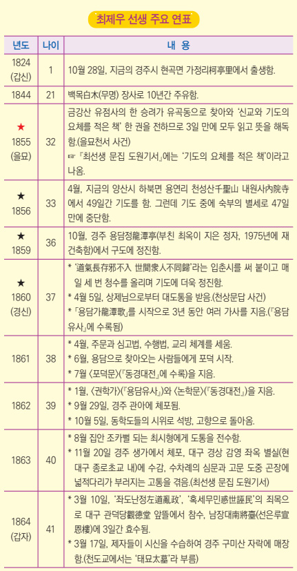 뜻밖에도 사월에 마음이 선뜩해지고 몸이 떨려서 무슨 병인지 집증할 수 없고 말로 형상하기도 어려울 즈음에 어떤 신선의 말씀이 있어 문득 귀에 들리므로 놀라 캐어물은즉 대답하시기를 “두려워 말고 겁내지 말라. 세상 사람이 나를 상제라 이르거늘 너는 상제를 알지 못하느냐?” (동경대전 포덕문)