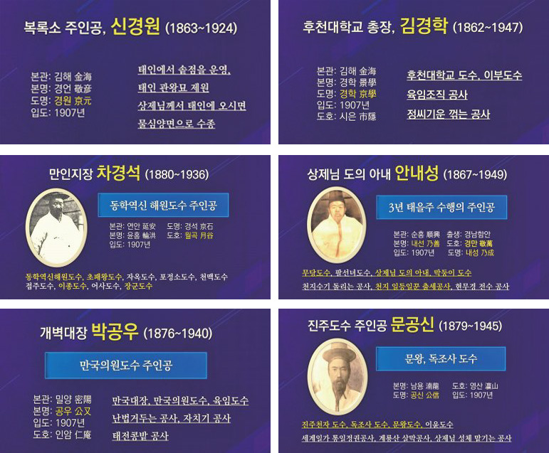 또한 태을주 전수 도수의 주인 안내성安乃成 성도, 진주 천자 도수의 주인공 문공신文公信 성도가 이 시기에 입문하였다.