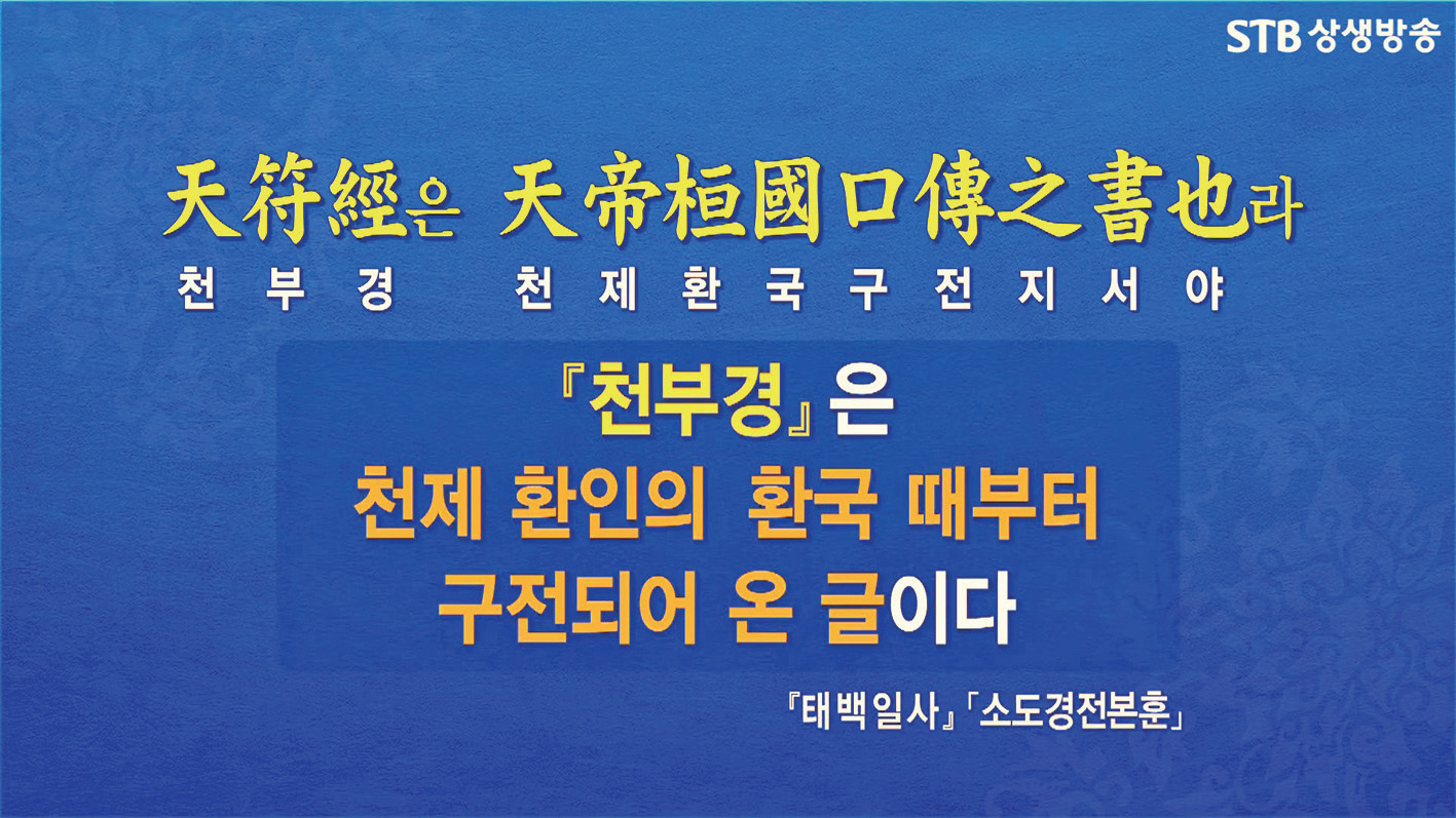 이미지와 문자의 비교를 구전口傳과 기록에도 적용하는데, 문자 기록이 없이 구전으로 전해 내려오는 원형 문화의 유산을 이미지에 배치하는 것은 『환단고기』 역사로도 의미가 있다고 생각한다. 종도사님께서는 2만 2천 년 전에 마고성의 마고삼신 할머니가 『천부경天符經』의 첫머리 열한 자인 ‘일시무시일一始無始一 석삼극析三極 무진본無盡本’을 직접 만드셔서 황손 자녀들을 길렀다고 하셨다. 『천부경』은 이후 환국 시대까지 구전되어 오다가 배달 시대에 문자로 옮겨졌다. 책의 논리대로면 이때 이미지에서 문자로 넘어가고 여신 시대에서 남성 문화 시대로 넘어간 것이다.