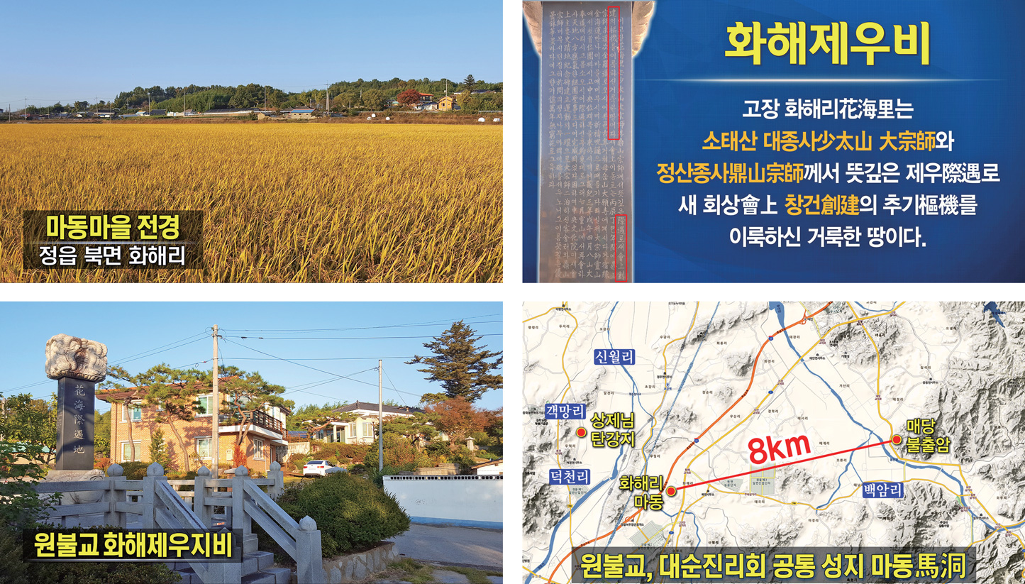 원불교에서는 상제님이 천지공사 보신 곳의 땅 7천 평을 사서 집을 지었습니다. 원불교 3대 종법사 김대산金大山이 거처했던 원심원圓心院이라는 곳입니다. 상제님이 남북통일 대공사와 조화신선 공부와 초립동이 공사를 보신 그곳에 집을 지은 거예요. 원불교는 사실 상제님 진리에 뿌리를 박고 있습니다. 그래서 교주가 되는 저분도 정말로 경건하게 태을주를 읽으면서 저 집에서 3년간 병을 고친 걸로 압니다.