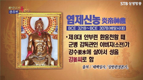 지금으로부터 약 5,300년 전 강수姜水에서 배달국 군병을 감독하던 소전少典의 아들 염제 신농神農씨는 의학과 경농의 시조로서 인류 문화에 복록과 수명의 길을 열어 준 분이다. 의학은 인류에게 수명을 연장해 주었고, 농사는 천지의 녹을 취하면서 복록을 가져다 준 것이다. 또한 시장을 열어 물건을 교역하게 함으로써 자본주의 체제의 토대인 시장 문화를 최초로 개척하였고, 인류 시원 성姓인 강姜씨의 시조가 되었기에 상제님도 원시반본의 가을 문화 시대를 맞아 강씨 성으로 오시게 되었다.