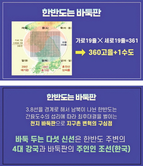상제님께서는 선천 판 안의 모든 법을 정리하시고, 가을철 통일 문명, 지상 조화선경 문화가 열릴 수 있도록 판밖의 남모르는 법으로 천지조화의 기틀을 새롭게 짜셨다. 만유 생명의 어머니인 지구의 혈穴 자리인 한반도 순창 회문산回文山 오선위기五仙圍碁의 지기가 발동해서 세계 정치 질서가 새롭게 열리도록 ‘천지의 판’을 짜신 것으로, 지난 20세기로부터 세계사 정치 판도가 개벽의 땅 한반도를 중심으로 오선위기 형국으로 벌어지며 천지 해원의 과정이 전개되어 왔다.