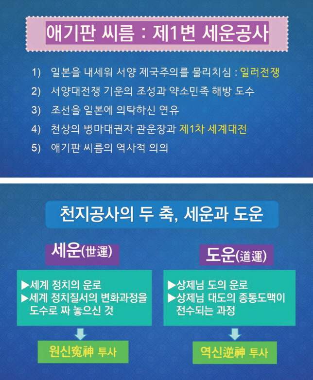 이제 상제님께서 세계 역사의 운로를 결정하신 #세운 공사# 내용을 구체적으로 살펴보겠다.