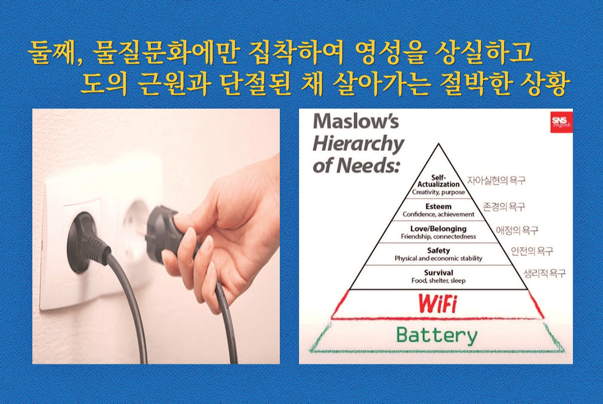 그래서 모든 현상이 신神의 조화임을 망각한 채로 자연을 무지막지하게 파괴하고, 천상 신도神道의 권위가 떨어지면서 인간은 금수禽獸와도 같은 존재로 전락했다는 것이 상제님의 이 시대에 대한 진단입니다.