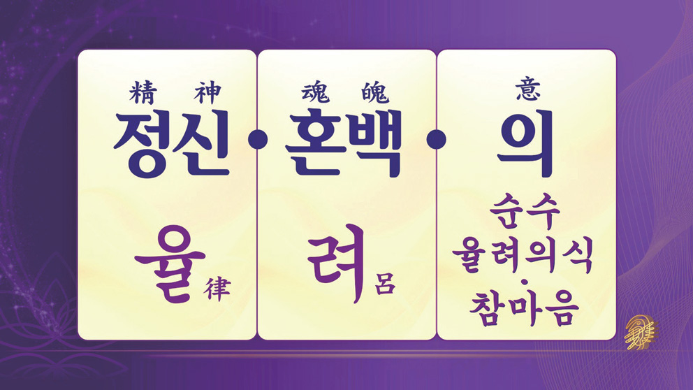 그런데 이 우주를 구성하는 정신혼백精神魂魄이라는 네 가지 기둥이 있습니다. 그 네 가지의 근본 바탕은 혼백魂魄입니다. 이 우주의 혼백을 다스리시는 분은 무형의 빛의 조물주인 삼신 망량님입니다. 그리고 현실적으로 작용을 하는 중심축은 정신精神입니다. 이것을 우주의 정신과 혼백이라 합니다. 이 네 기둥인 정신혼백이 일체, 하나가 되어서 열리는 것이 우리의 의식意識입니다.