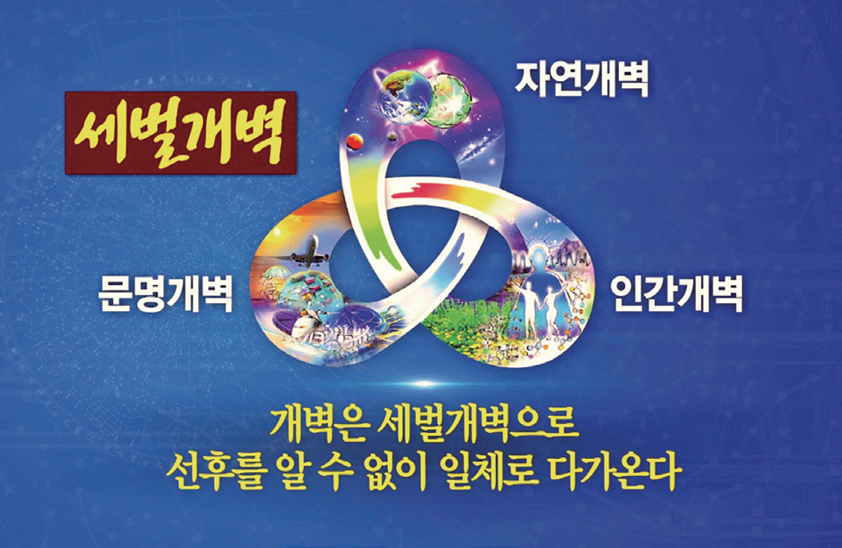 ’이다. 문제는 ‘이 세 가지 개벽 사건’이 한 덩어리로 얽혀서 인과적으로 발생한다는 데 있다. 끝이 보이지 않는 총체적인 온 우주의 대변혁 위기 상황이 지금 우리 곁으로 숨 가쁘게 초를 다투며 다가오고 있다.