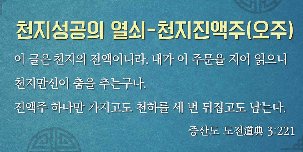 상제님께서 내려 주신 모든 주문은 우주주재자의 도통 경계에서 상제님의 도권道權과 신권神權이 그대로 형상화된 것이다. 특히