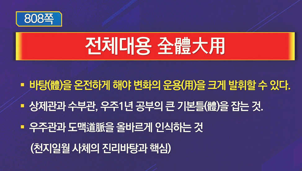 바탕을 온전하게 해야 변화의 응용을 크게 발휘할 수 있는 것(전체대용全體大用)이다.