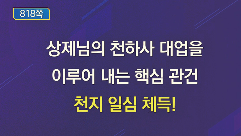 상제님 대도 진리를 전할 때는 반드시 진리의 주인이신 상제님과 우주 1년 이야기를 중심으로 천지 대세의 틀에 눈뜨게 해 줘야 한다.
