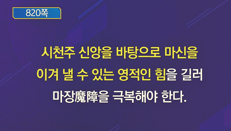 시천주 신앙을 바탕으로 마신을 이겨 낼 수 있는 영적인 힘을 길러 마장魔障을 극복할 수 있어야 한다.