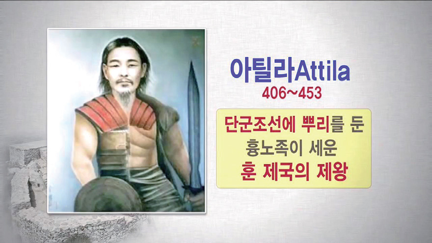 아틸라는 단군조선에 뿌리를 둔 흉노족이 세운 훈 제국의 제왕이다. 훈HUN이라는 것은 최초의 나라 환국의 우주 광명 환桓과 같은 음가로 인간을 의미한다. 훈과 환은 광명을 상징하는 같은 계열의 소리이다. - 〈환단고기 북콘서트〉