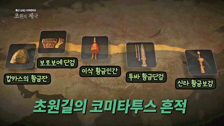 다큐 〈초원의 제국〉 2부는 이렇게 초원길 전체가 코미타투스의 전사 문화를 공유하고 있었고, 한반도와 경주는 중앙유라시아 고대사의 큰 축이라는 것을 보여 준다. 캅카스의 황금잔에서 보로보에 단검, 이삭 황금인간, 투바 황금단검, 신라 황금보검까지 초원길을 따라간 8,000킬로미터 곳곳엔 코미타투스의 흔적이 있었다.