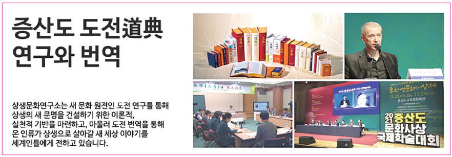 물론 학문적으로 『도전』과 상제님 진리를 피나게 연구하고 깊게 파는 것도 의미 있는 일입니다. 하지만, 그와 함께 세상과도 소통하면서 『도전』 속 상제님 말씀이 세상과 사람들 속에서 살아 넘쳐흐르도록 다듬고 전파하는 노력을 전국의 모든 도생님들과 해 나가는 것이 앞으로 연구소가 가야 할 길일 것 같습니다.