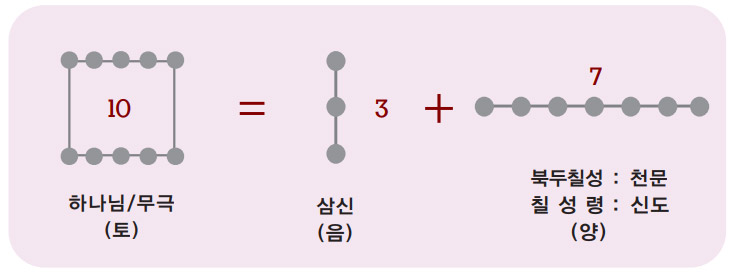 우리 민족은 수천 년 전부터 우주를 구성하는 기본 요소인 하늘과 땅 그리고 인간을 삼재三才라 하였고, 그 구조 속에서 창조주를 인식하고 체험하면서 신을
