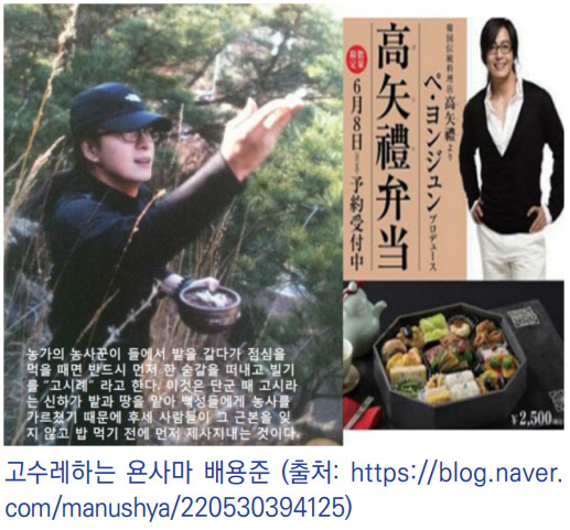 또한 단군 성조 시절 농사를 가르쳐 준 고시高矢씨의 큰 은덕을 기리기 위해 야외에서 음식을 먹을 때, 먼저 음식을 세 번 떠서 바치고 먹는
