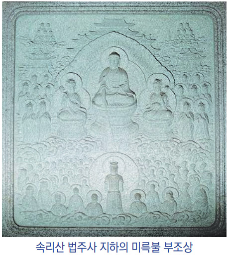 충청도 속리산 법주사에 가면 세계에서 가장 큰 미륵불상이 있는데, 그 지하에 석가불의 발밑에 둘러앉은 숱한 제자들 가운데 석가불을 향해 합장하고 있는 동자 미륵의 부조상이 있다. 석가 부처가 수천 년을 구도하며 몸담았던 도솔천의 천주님,