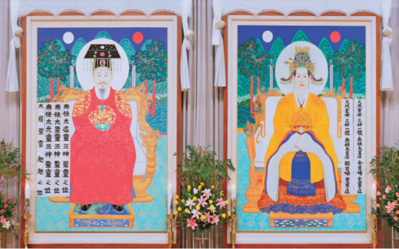 예를 들어서 우주에 아버지가 계신다고 아버지만 찾습니다. 독양만 외치는 것입니다. 천지의 어머니가 계시는데 쉬운 말로 태모님이라 합니다. 또는 수부님이라 합니다. 머리 수首 자에다 지어미 부婦 자입니다. 수부님은 모든 인간과 모든 신의 어머니입니다. 천지의 아버지와 천지의 어머니가 가을개벽 문턱에서 인간으로 오셨습니다. 우리가 천신단天神壇을 보면 그 중앙에 상제님과 태모님을 모시고 있잖아요.