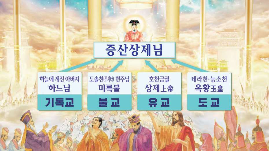 천상의 신성, 부처, 보살들이 하늘과 땅의 겁액과 인간과 신의 세계의 겁액을 구천九天에 계시는 상제님께 하소연했습니다. 천상의 태라천太羅天 즉 도솔천兜率天, 능소천凌霄天에 계시는 하늘의 주인인 상제님께 하소연했던 것입니다. 인간으로 오신 상제님께서 “내가 차마 그 뜻을 물리치지 못하고 이 세상에 스스로 내려오게 되었다.”라고 말씀하셨습니다.